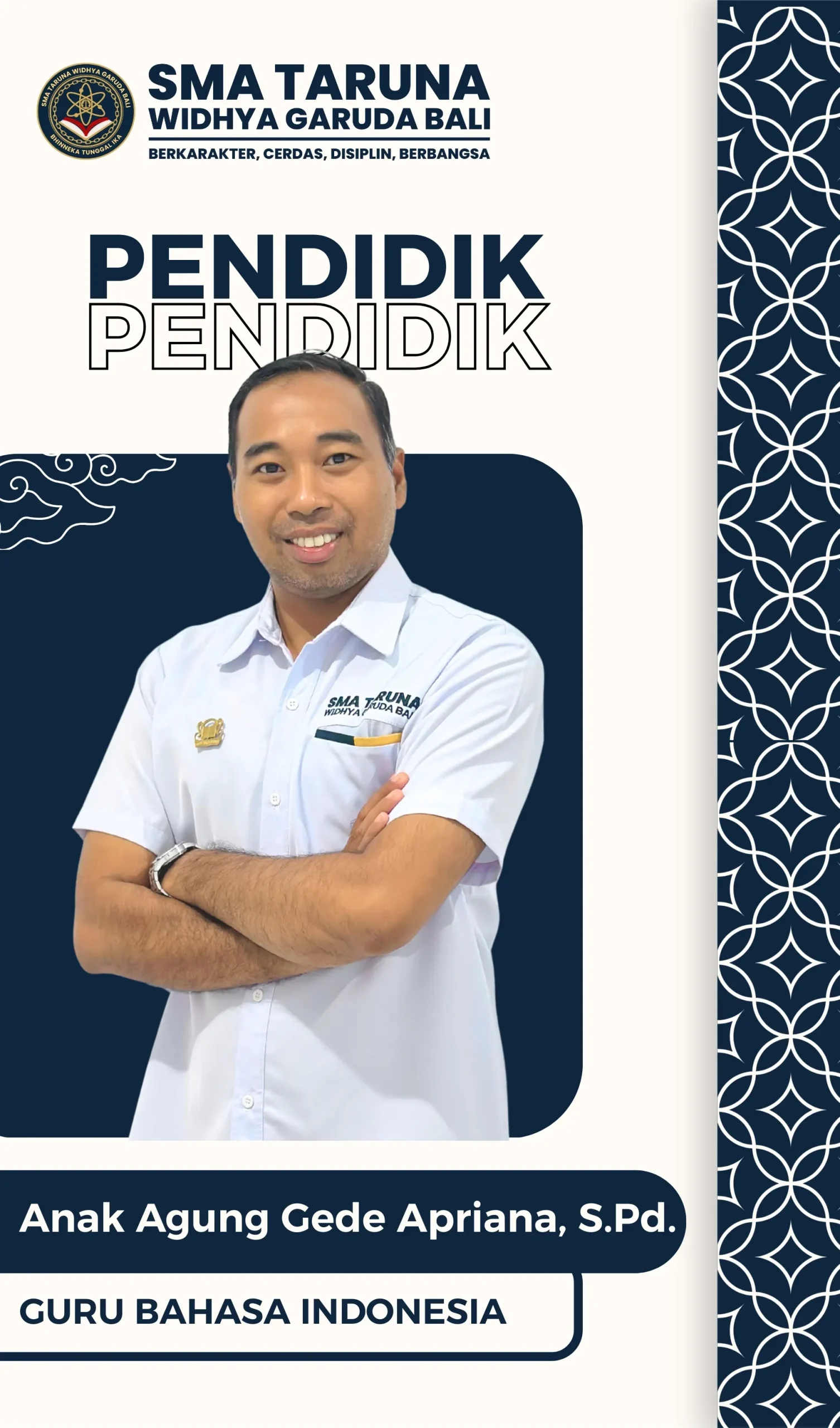 Anak Agung Gede Bagus Apriana Position: Guru Bahasa IndonesiaStatus: GTTNIP: -NUPTK: -Active: 2024 - SekarangGender: Laki - LakiPlace & Date of Birth: -Religion: -Address: - Guru Bahasa Indonesia Facebook Twitter WhatsApp Pinterest