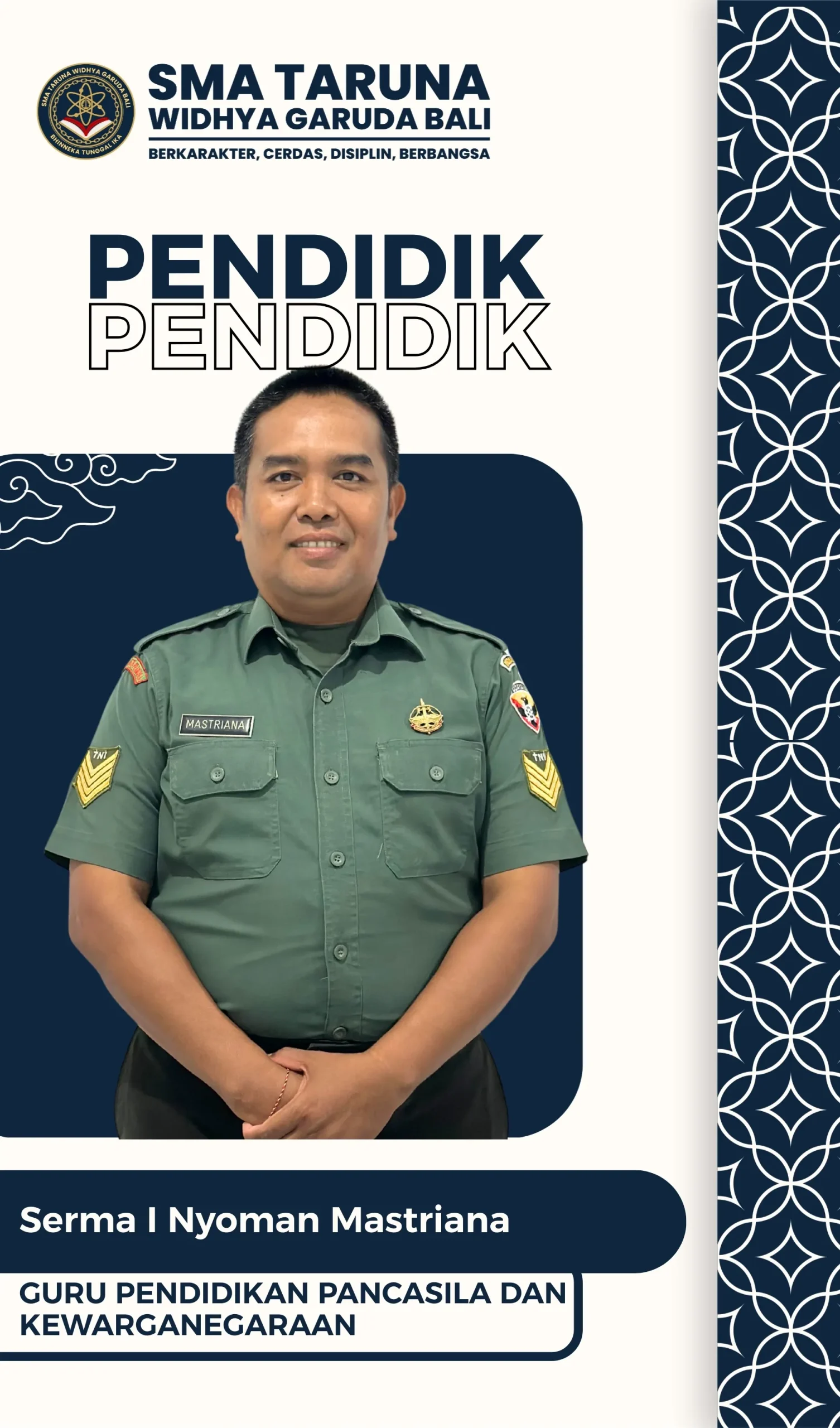 I Nyoman Mastriana Jabatan: Guru PKNStatus: GTYNIP: -NUPTK: -Aktif: 2022 - SekarangKelamin: Laki - LakiTempat & Tanggal Lahir: -Agama: HinduAlamat: Singaraja Tenaga Pendidik Mapel PKN Facebook Twitter WhatsApp Pinterest