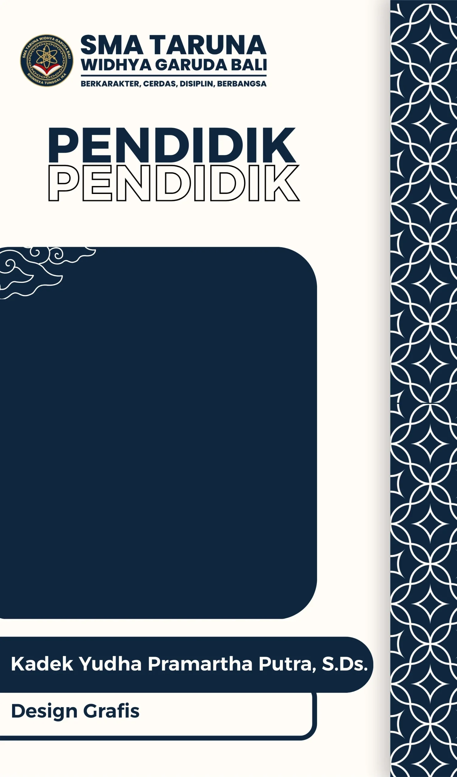 Kadek Yudha Pramartha Putra Jabatan: Design GrafisStatus: -NIP: -NUPTK: -Aktif: -Kelamin: Laki - LakiTempat & Tanggal Lahir: -Agama: HinduAlamat: - Design Grafis Facebook Twitter WhatsApp Pinterest