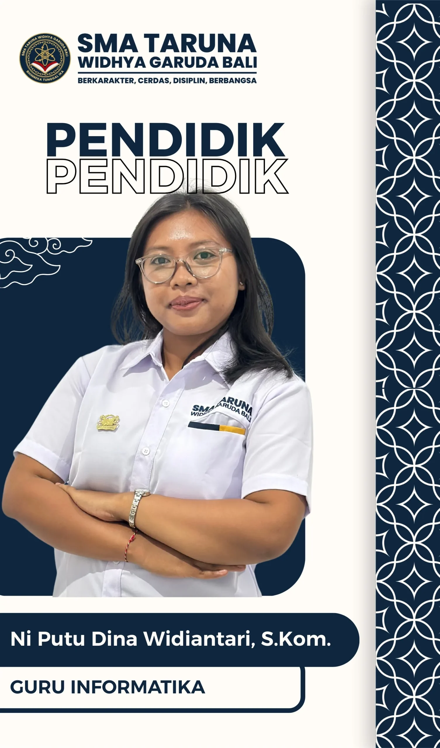 Ni Putu Dina Widiantari Jabatan: Guru InformatikaStatus: GTTNIP: -NUPTK: -Aktif: -Kelamin: PerempuanTempat & Tanggal Lahir: -Agama: HinduAlamat: - Guru Informatika Facebook Twitter WhatsApp Pinterest